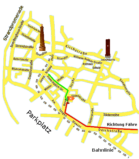 Ob Sie mit dem Zug oder mit dem eigenen Auto anreisen, liegt ganz bei Ihnen. Sie erreichen uns einfach und bequem. Wir befinden uns in zentraler Lage, ganz in der Nähe der Haupteinkaufsstraße in einer ruhigen Sackgasse und wenige Gehminuten vom Strand entfernt.